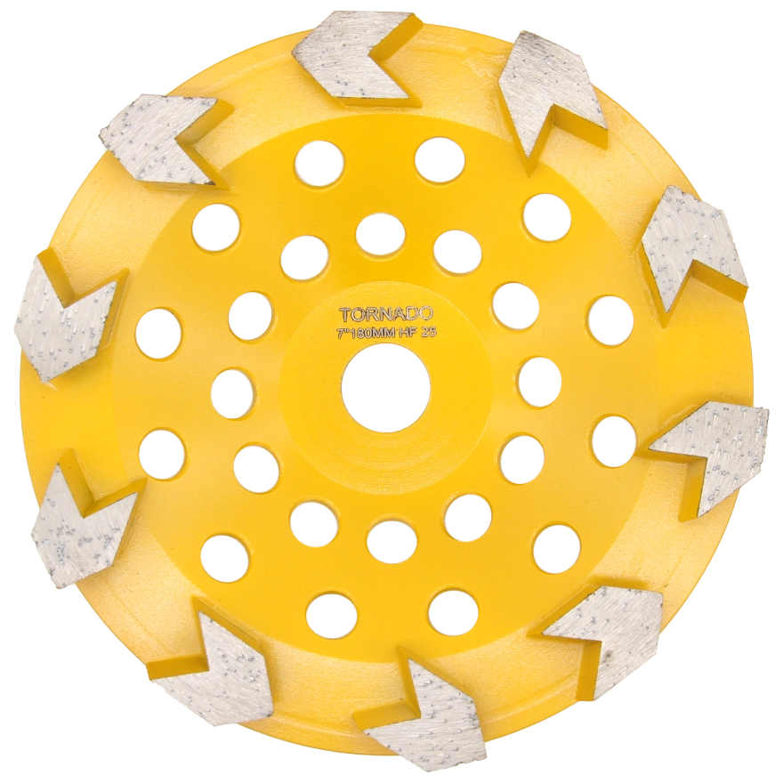 7″ 178mm Cup Wheel – 10 Segment – 25Grit – Hard Floor – Yellow