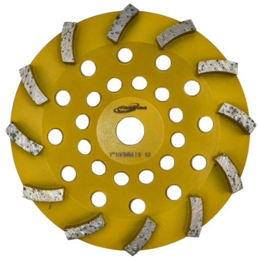 7″ 180mm Cup Wheel – 12 Segment – 16Grit – Hard Floor – Yellow